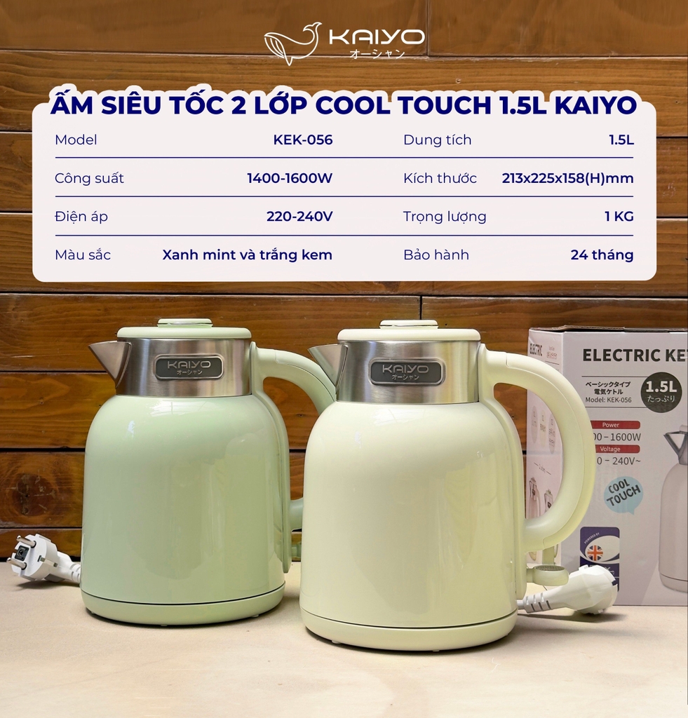 Reviews - Đánh giá Ấm siêu tốc 2 lớp cooltouch 1,5L Kaiyo màu xanh mint