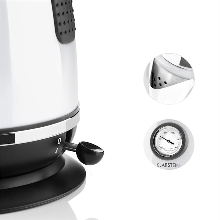 Ấm siêu tốc Klarstein dung tích 1,7 lít, được thiết kế kiểu dáng giống như một chiếc ấm uống trà cổ điển với gam màu sang trọng sẽ góp phần tô điểm thêm cho không gian căn bếp nhà bạn.