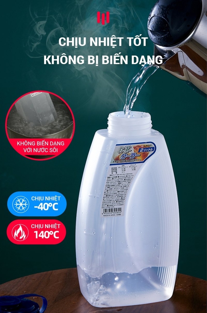 Bình đựng nước dung tích 2L với thân bình được làm bằng chất liệu nhựa PP cao cấp giúp sản phẩm chịu được độ lạnh đến -30 độ C và độ nóng lên đến 110 độ C.
