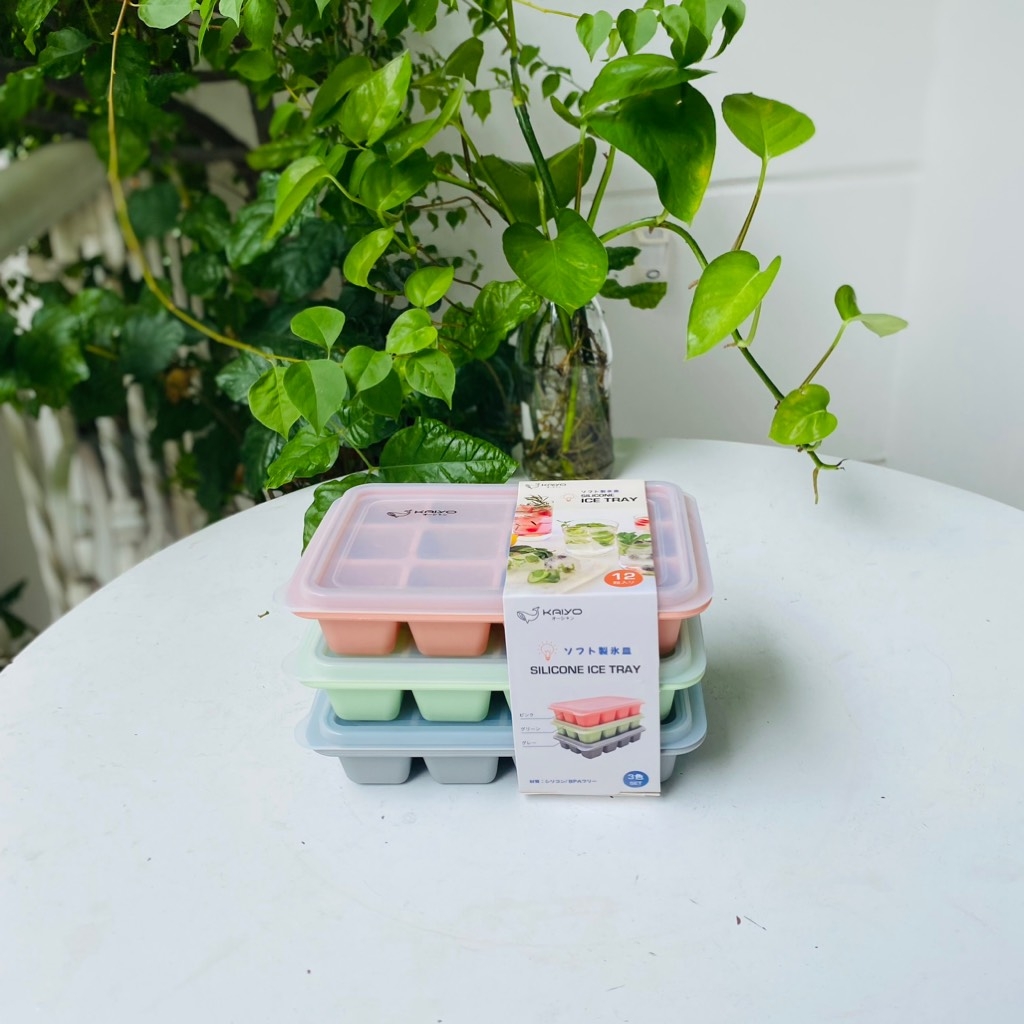 - Khay đá silicone Kaiyo thương hiệu Nhật combo 3 khay đá, chính hãng, sản phẩm có nắp đậy, làm khay đá, chia đồ ăn dặm