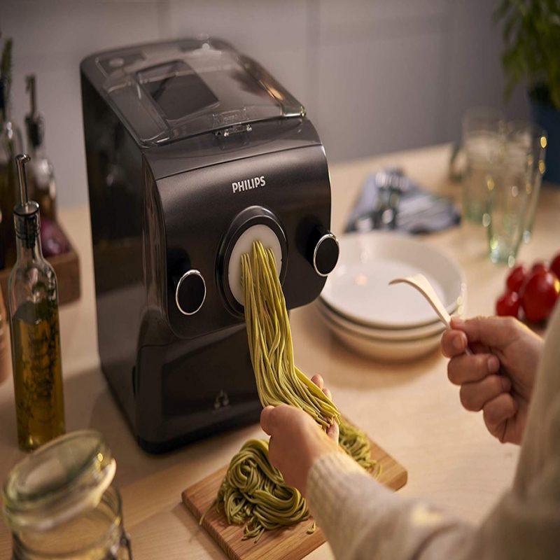 ?? Việc làm bún, mì trở lên nhẹ nhàng, đơn giản hơn bao giờ hết nhờ e máy philips này nhé: các chị chỉ cần đổ nguyên liệu vào máy, bấm nút, thêm chất lỏng (nước/trứng) và sau 5 – 10 phút, những sợi mì, bún cứ như có phép thuật, cứ từ từ xuất hiện