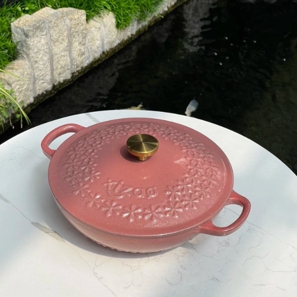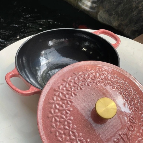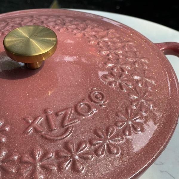Reviews - Đánh giá Nồi chảo gang Xizao 22cm nắp hoa nhũ hồng